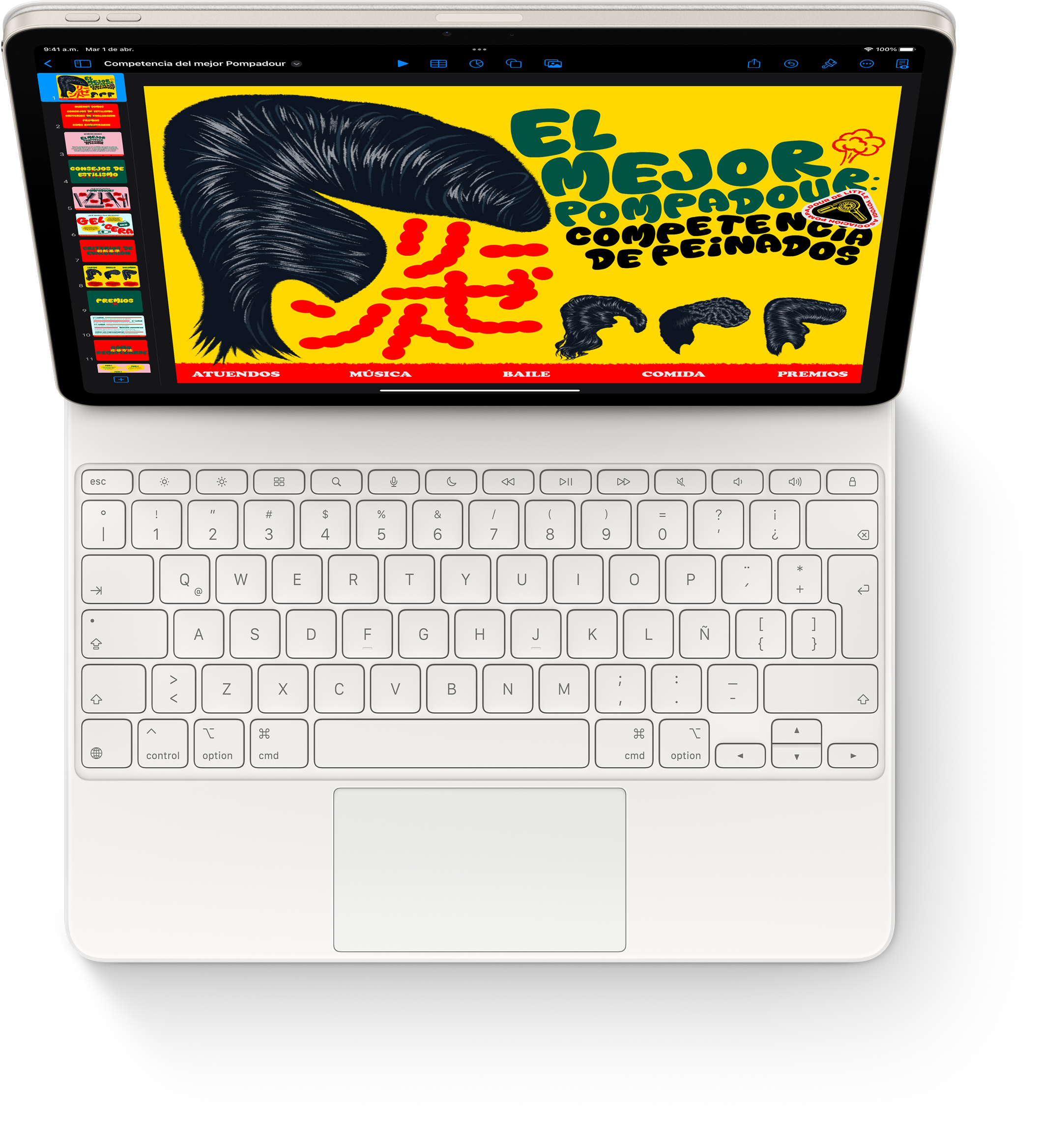 - El Magic Keyboard es el compañero perfecto del iPad Air. Es increíblemente cómodo para escribir y trae un trackpad para tareas de mayor precisión, todo en un diseño elegante y portátil. Cuenta con una fila de 14 teclas de función, viene con conector USB-C para cargar tu iPad y además protege tu dispositivo por ambos lados. El diseño flotante se ajusta a la perfección a distintos ángulos de visión y el amplio trackpad de vidrio ofrece nuevas posibilidades para trabajar con iPadOS.